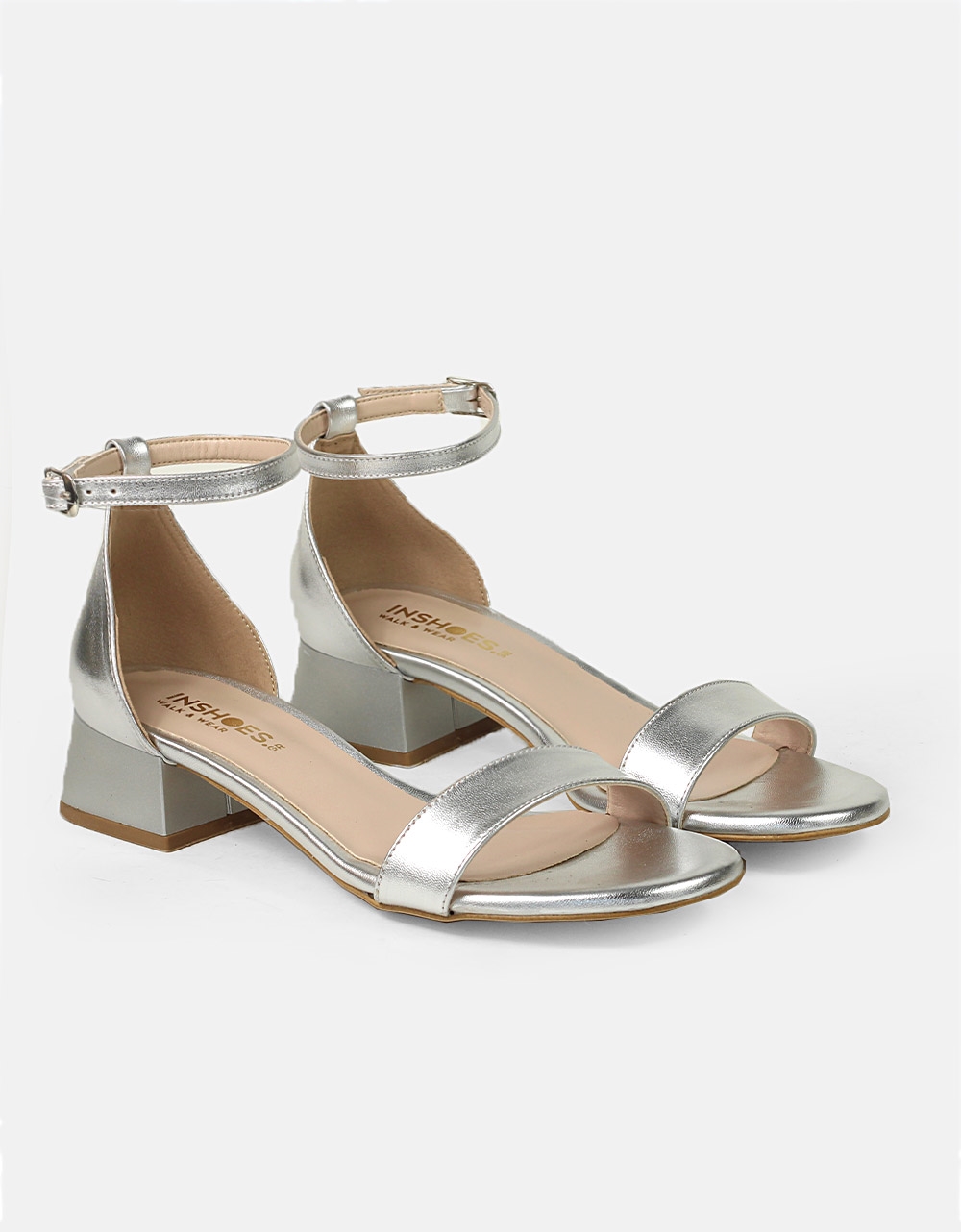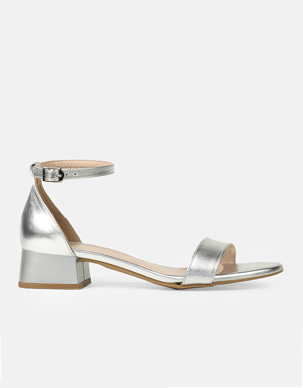 Μονόχρωμα πεδίλα Ελληνικής κατασκευής με μπαρέτα Ασημί