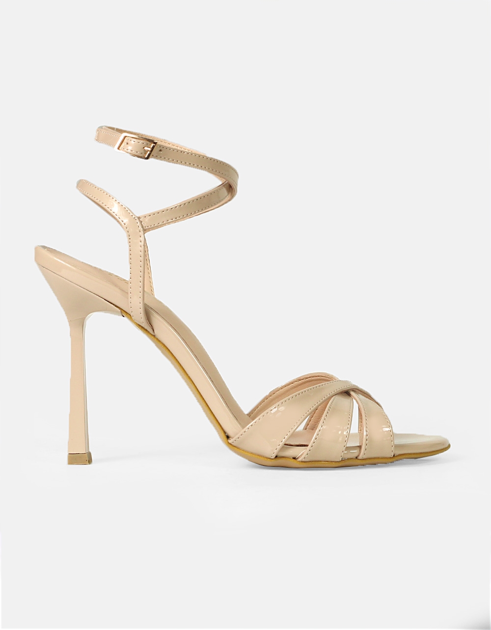 Πέδιλα Ελληνικής Κατασκευής λουστρίνι με λεπτό τακούνι Nude