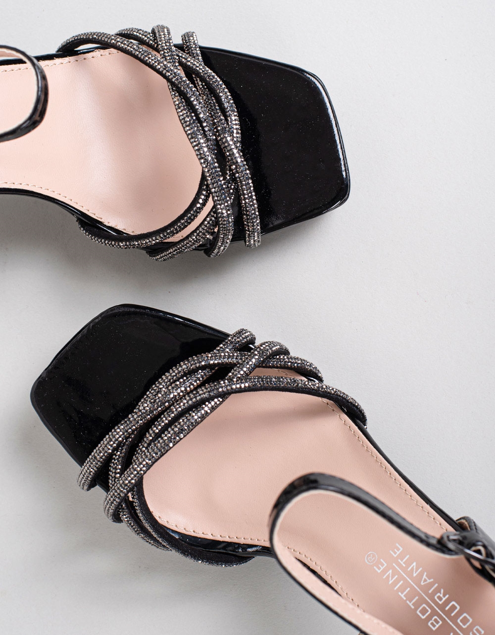 Πέδιλα με μπαρέτα και λουράκια με strass Μαύρο/Ασημί