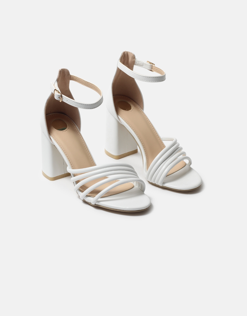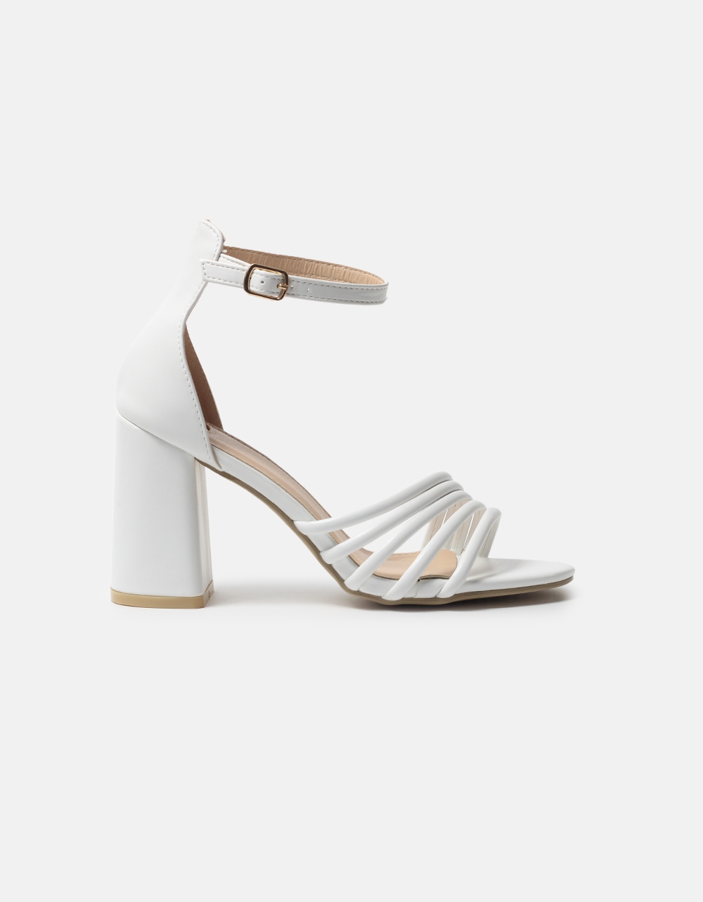 Πέδιλα με τετράγωνο τακούνι και μπαρέτα Λευκό