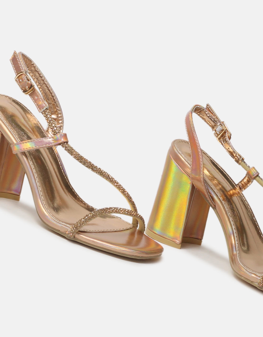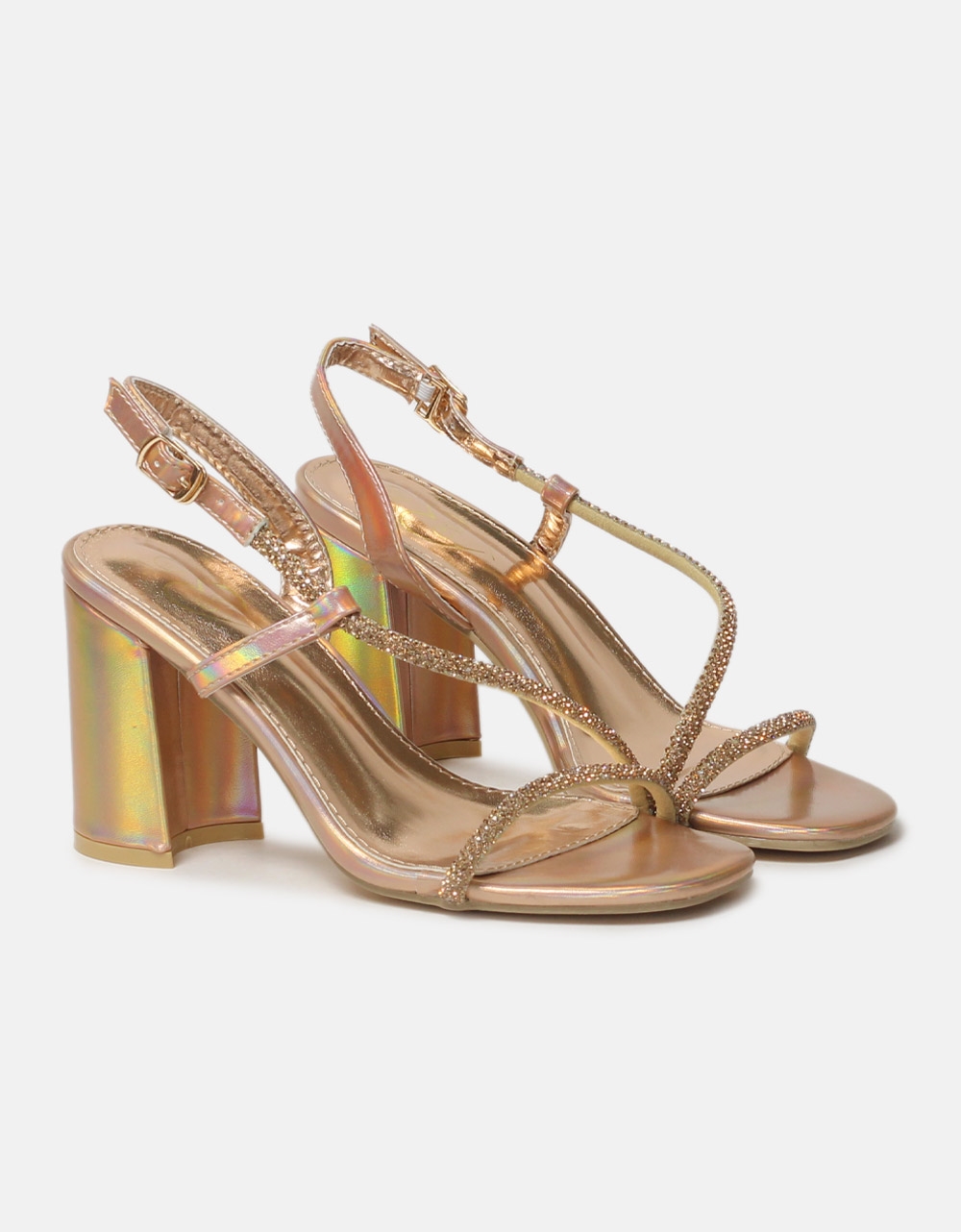 Πέδιλα με τετράγωνο τακούνι και strass Χαλκός