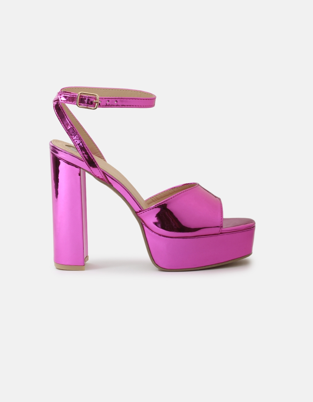 Ψηλοτάκουνα μονόχρωμα πέδιλα λουστρίνι Φούξια