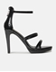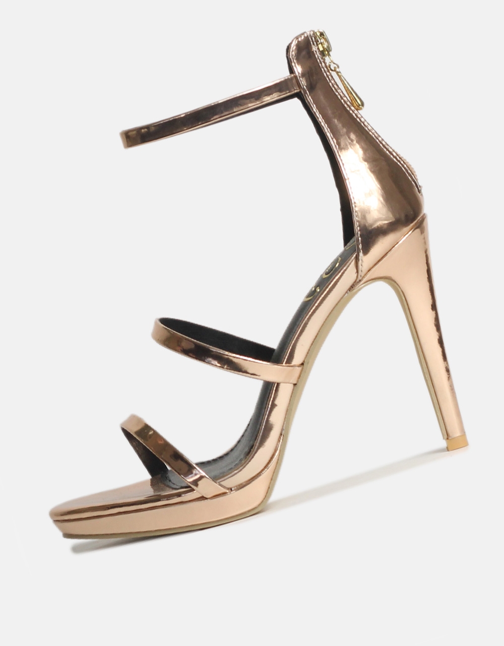 Εντυπωσιακά ψηλοτάκουνα πέδιλα κατασκευασμένα από λουστρίνι. Διαθέτουν λεπτό τακούνι και φιάπα, ενώ κλείνουν με φερμουάρ στην φτέρνα.