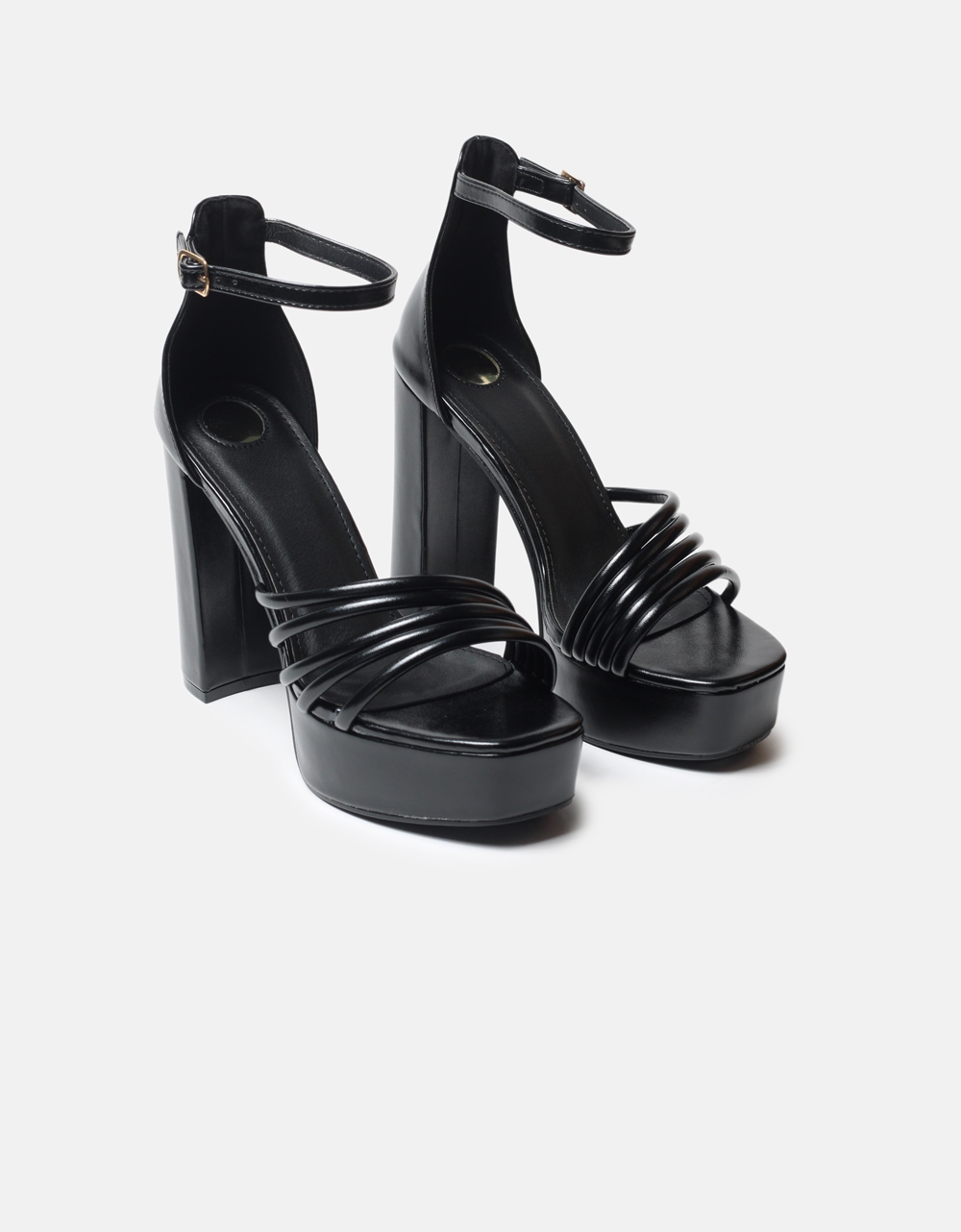 Ψηλοτάκουνα πέδιλα με τετράγωνο τακούνι Μαύρο