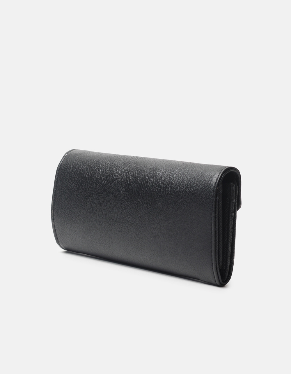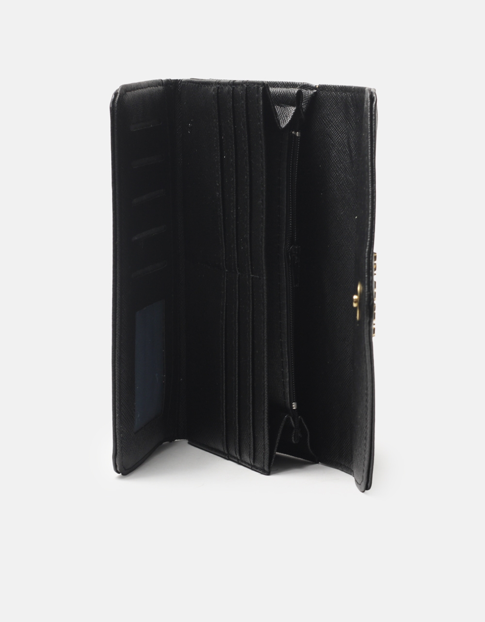 Βasic μονόχρωμο πορτοφόλι με πολλαπλές θήκες Μαύρο