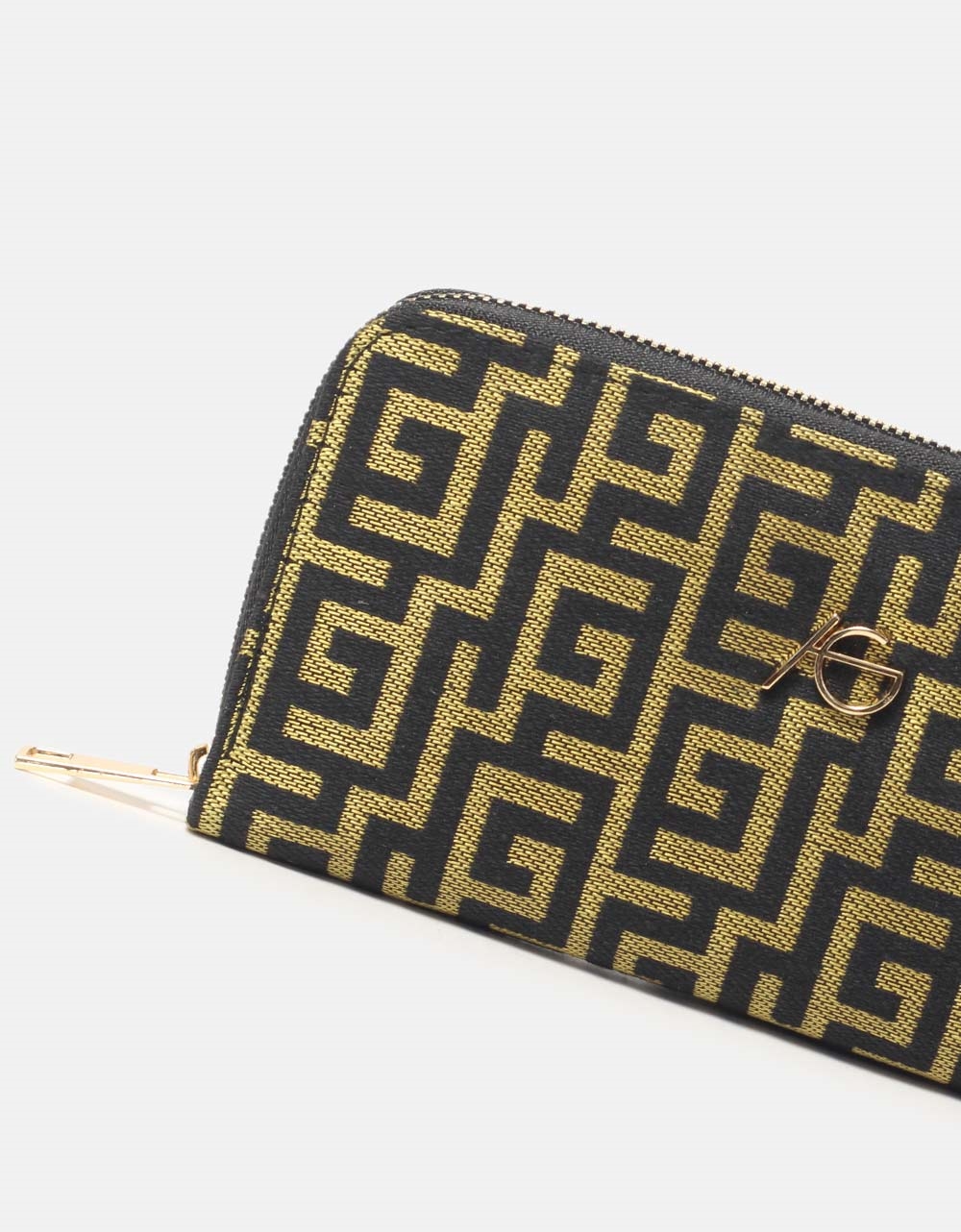Χειροποίητο πορτοφόλι με μαίανδρο και φερμουάρ Χρυσό