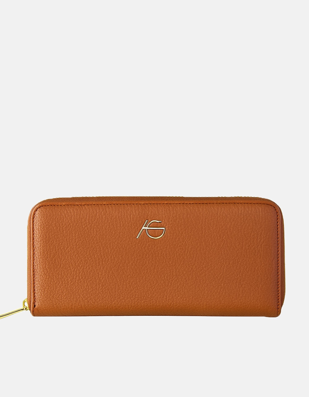Χειροποίητο πορτοφόλι, Ελληνικής κατασκευής της εταιρείας ARI GORGIO, με μαίανδρο L. Κλείνει με φερμουάρ και διαθέτει θήκες για κάρτες, χαρτονομίσματα και ξεχωριστή θήκη με φερμουάρ για κέρματα.