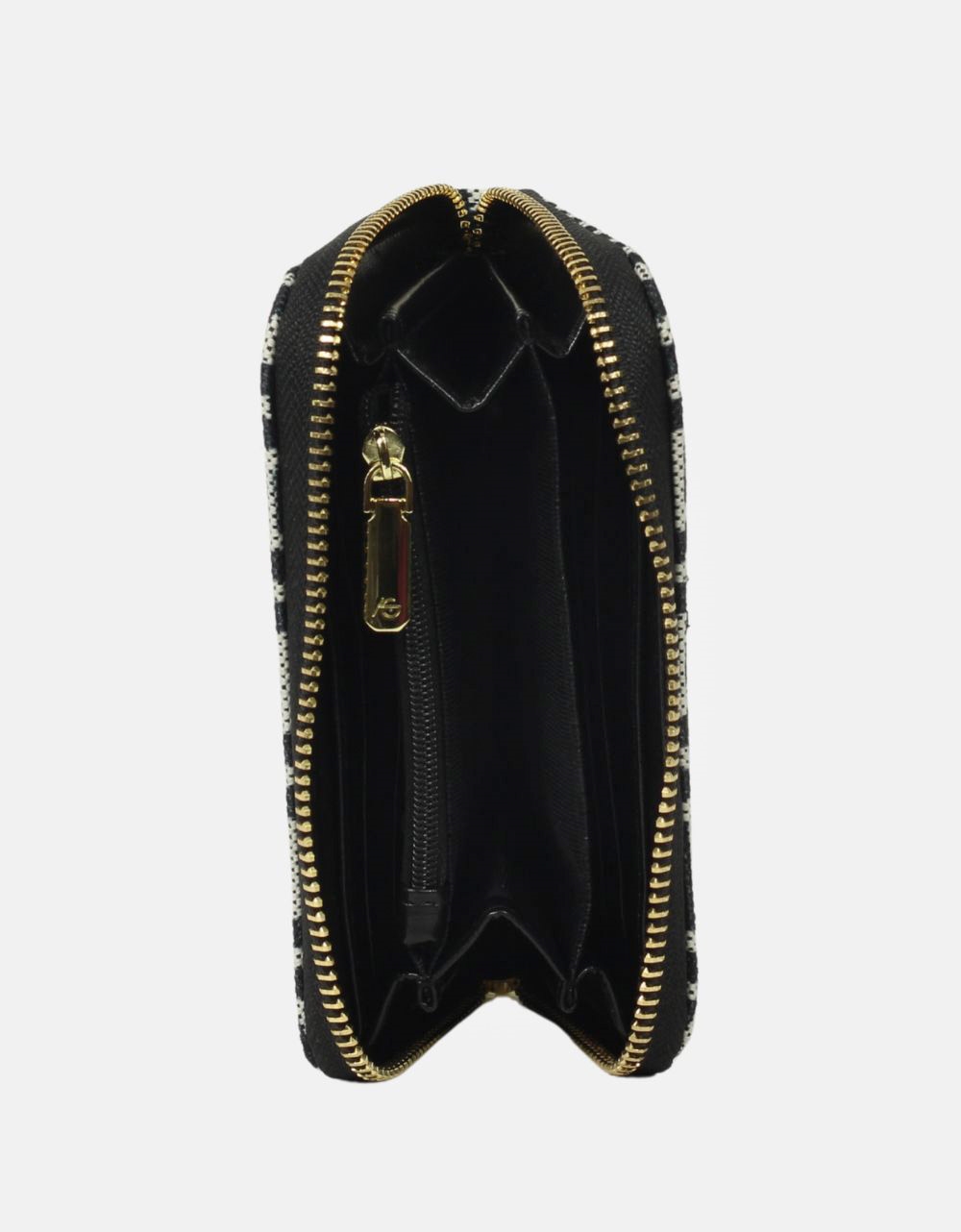 Χειροποίητο πορτοφόλι με μαίανδρο και φερμουάρ M Μαύρο/Λευκό