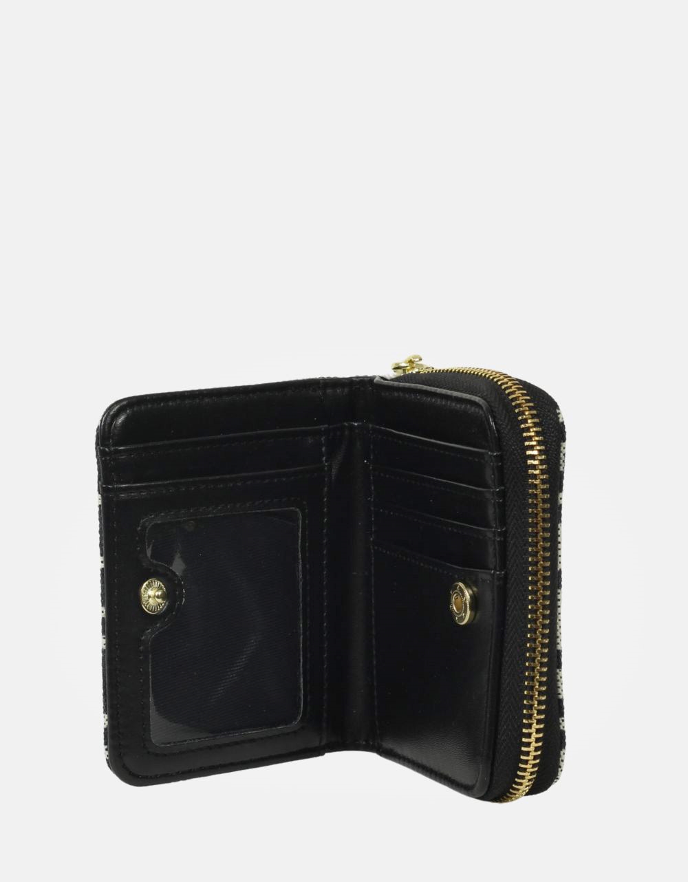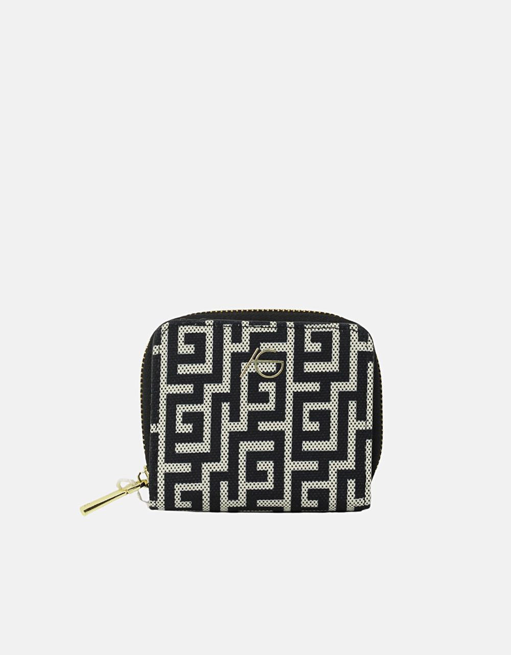 Χειροποίητο πορτοφόλι με μαίανδρο και φερμουάρ S Μαύρο/Λευκό