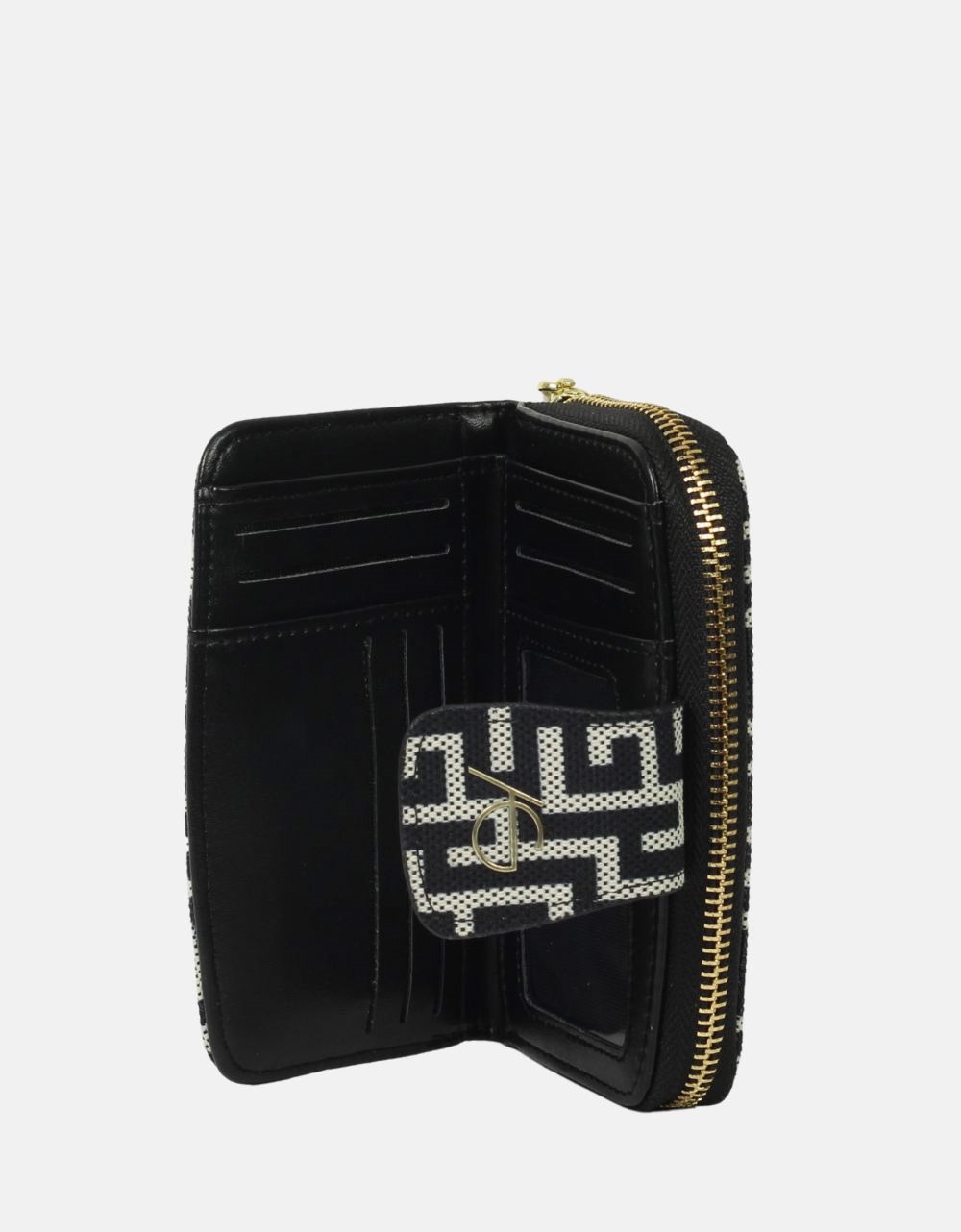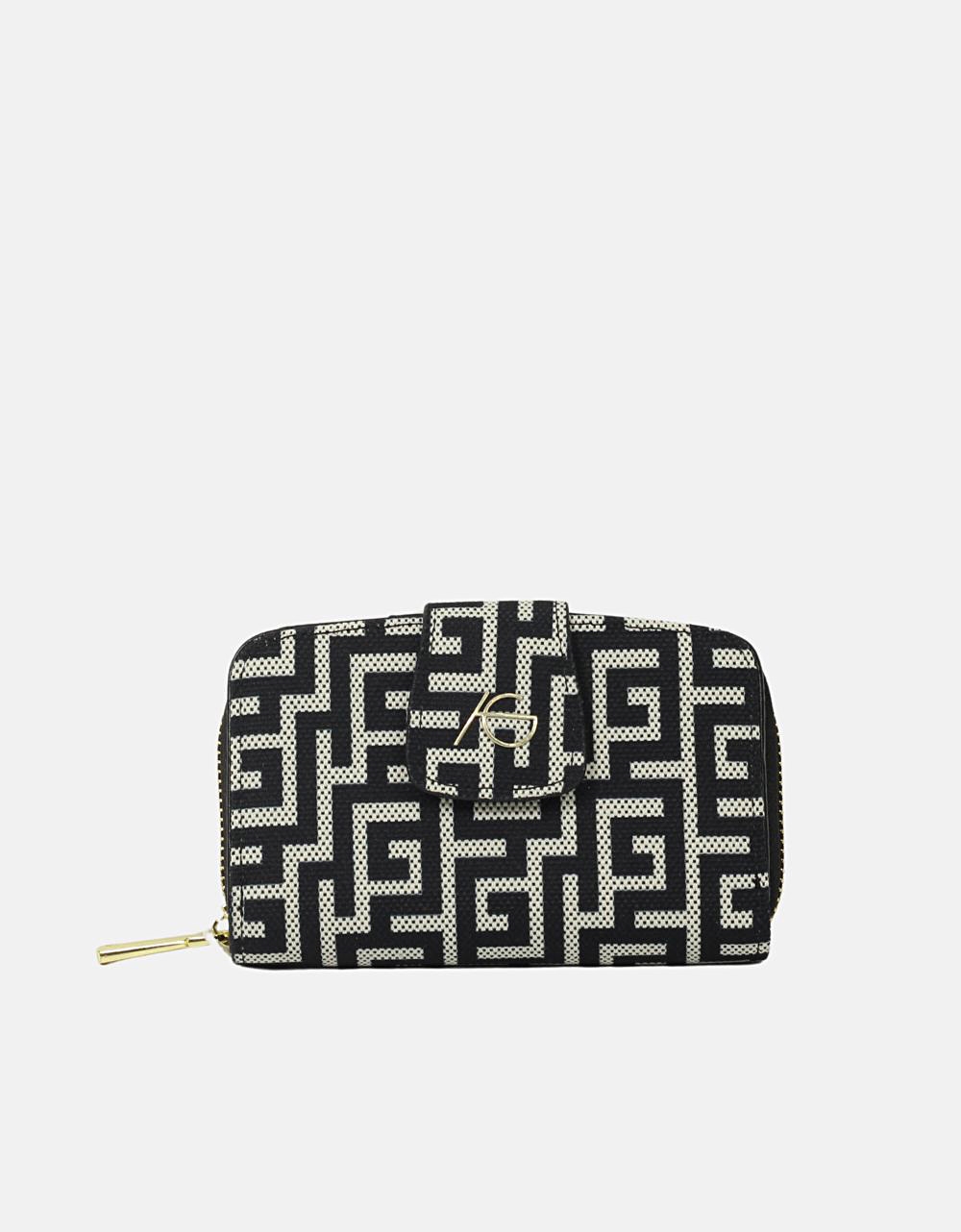 Χειροποίητο πορτοφόλι με μαίανδρο και μαγνητικό κλιπ Μαύρο/Λευκό