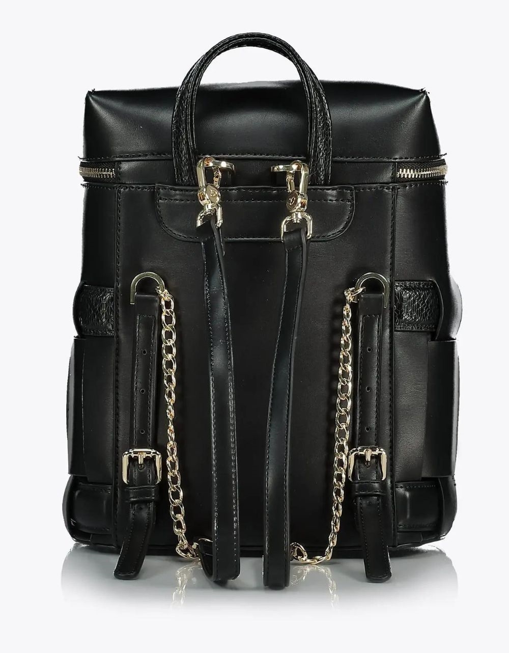 Σακίδιο πλάτης της εταιρείας Axel, με ένα ενιαίο ευρύχωρο τμήμα, σε ορθογώνιο σχήμα που κλείνει με διπλό φερμουάρ. Διαθέτει λαβή χειρός και ρυθμιζόμενα λουριά με αλυσίδα. Κατασκευασμένο από υψηλής ποιότητας τεχνόδερμα. Φόδρα εσωτερικά και τσέπη με φερμουάρ.