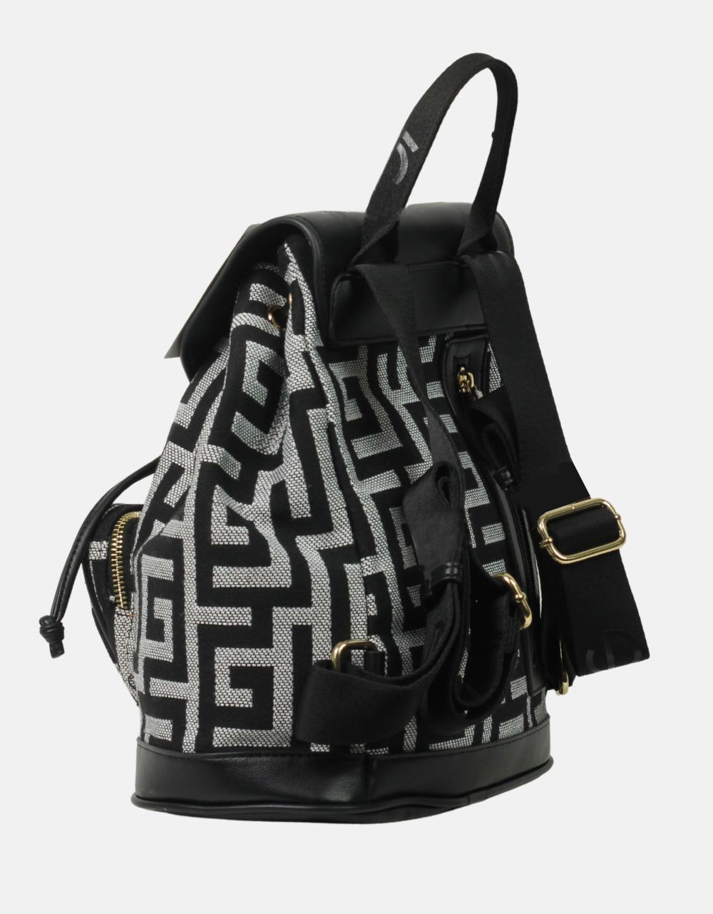 Χειροποίητο σακίδιο πλάτης με μαίανδρο και μαγνητικό κλίπ Μαύρο/Λευκό