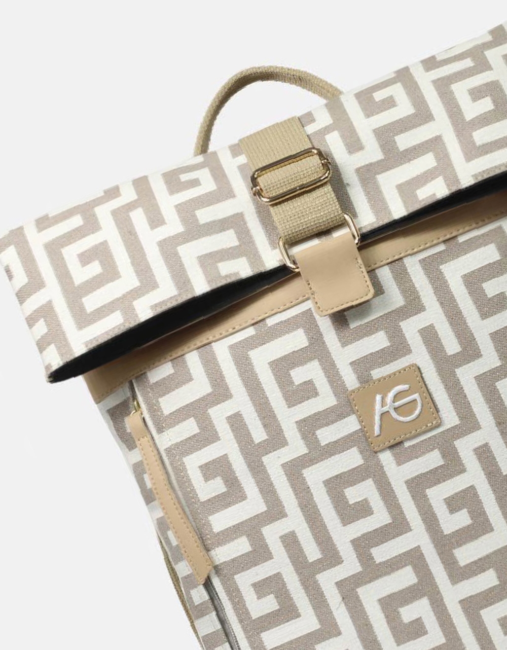 Χειροποίητο σακίδιο πλάτης φάκελος με μαίανδρο Άμμου/Μπεζ