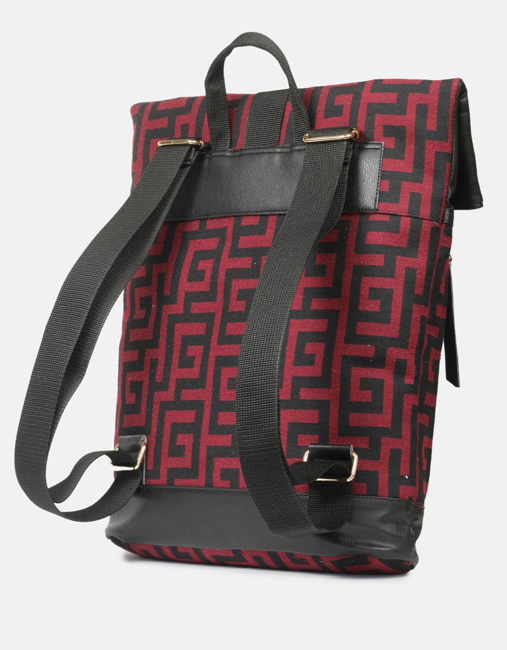 Γυναικείο σακίδιο πλάτης χειροποίητο, Ελληνικής κατασκευής από ύφασμα με μαίανδρο. Διαθέτει προσαρμοζόμενα λουριά πλάτης και κλείνει με κλιπ.