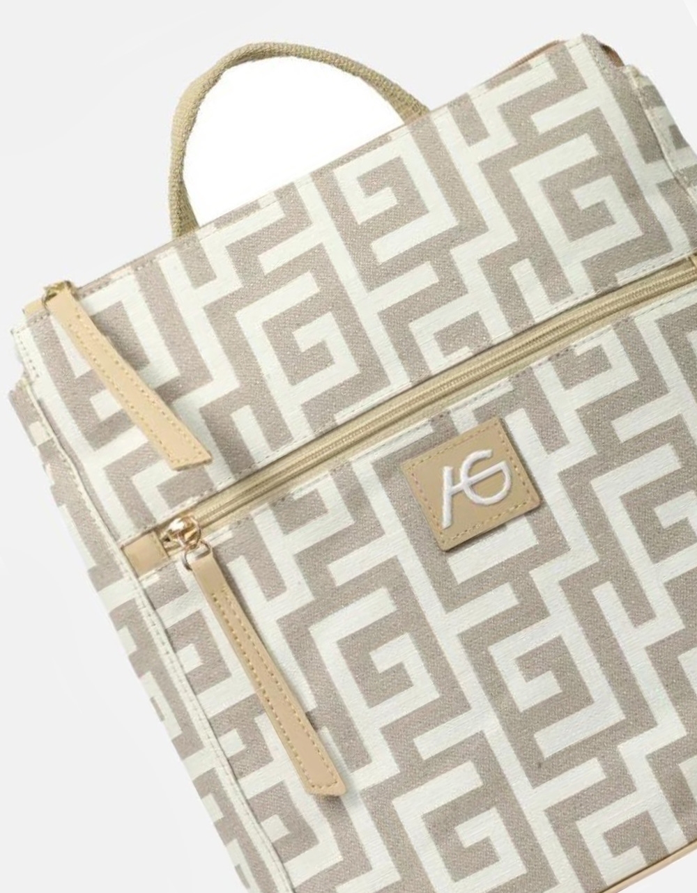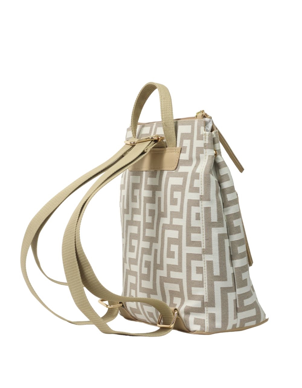 Χειροποίητο σακίδιο πλάτης με διπλό φερμουάρ Άμμου/Μπεζ