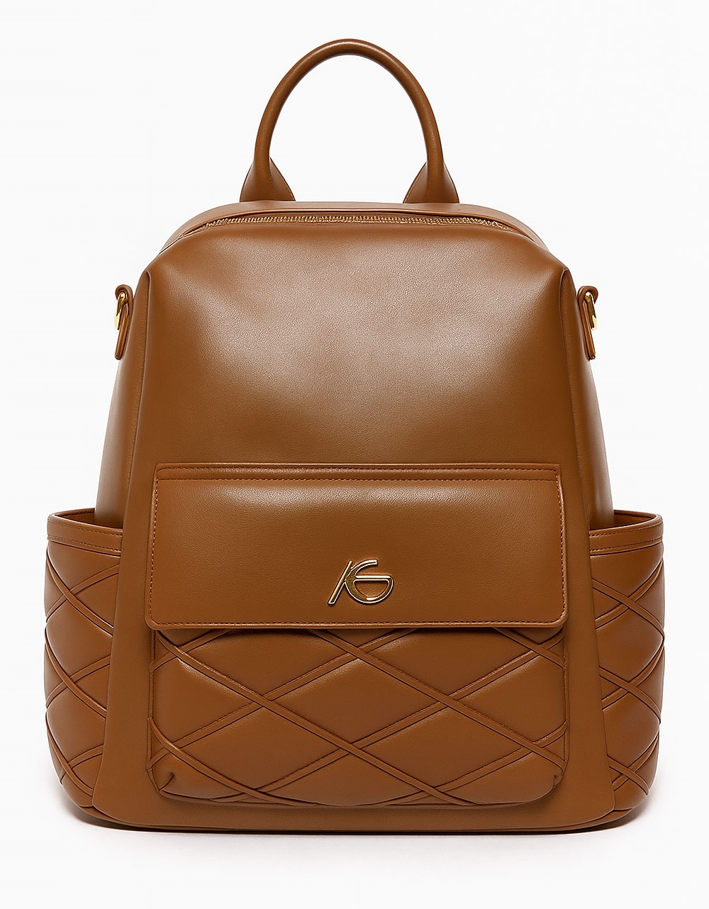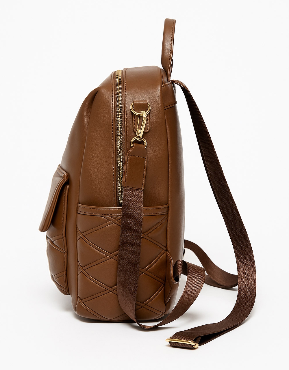 Χειροποίητο σακίδιο πλάτης με εξωτερικές τσέπες Καφέ