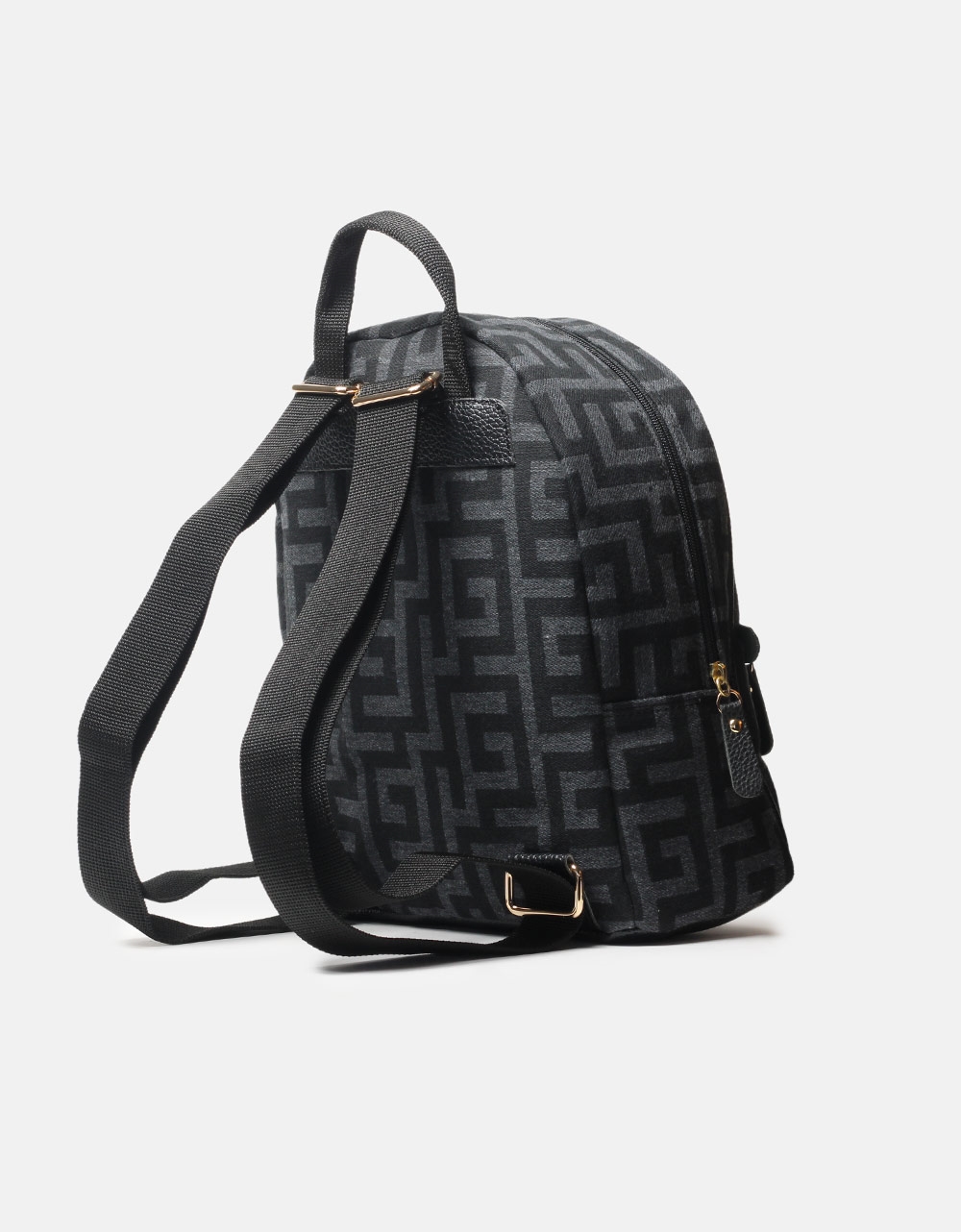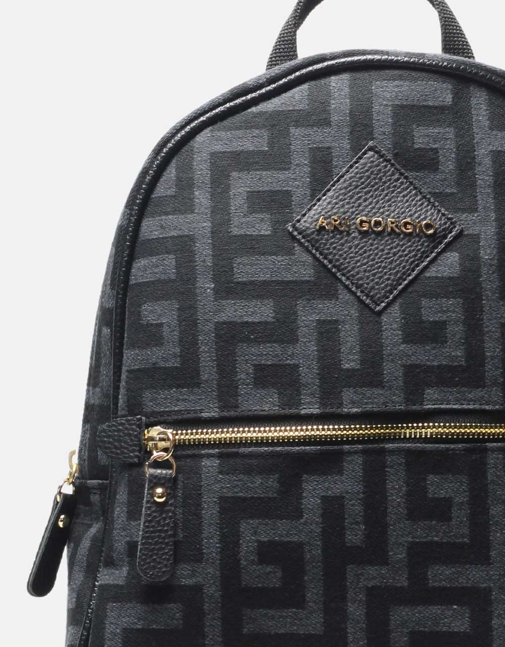 Σακίδιο πλάτης χειροποίητο, Ελληνικής κατασκευής της εταιρείας ARI GORGIO, από ύφασμα με μαίανδρο. Διαθέτει προσαρμοζόμενα λουριά πλάτης και κλείνει με φερμουάρ.