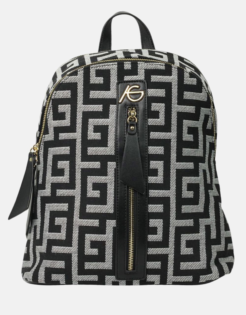 Γυναικείο σακίδιο πλάτης χειροποίητο από ύφασμα με μαίανδρο της εταιρείας ARI GORGIO. Διαθέτει προσαρμοζόμενα λουριά πλάτης και δύο εξωτερικές τσεπές που κλείνουν με φερμουάρ.