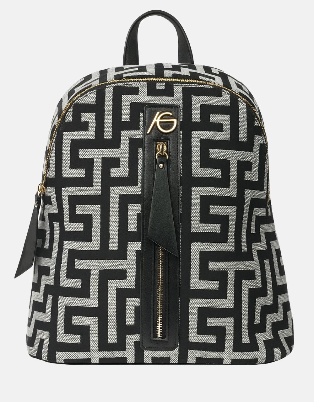 Γυναικείο σακίδιο πλάτης χειροποίητο από ύφασμα με μαίανδρο της εταιρείας ARI GORGIO. Διαθέτει προσαρμοζόμενα λουριά πλάτης και δύο εξωτερικές τσεπές που κλείνουν με φερμουάρ.