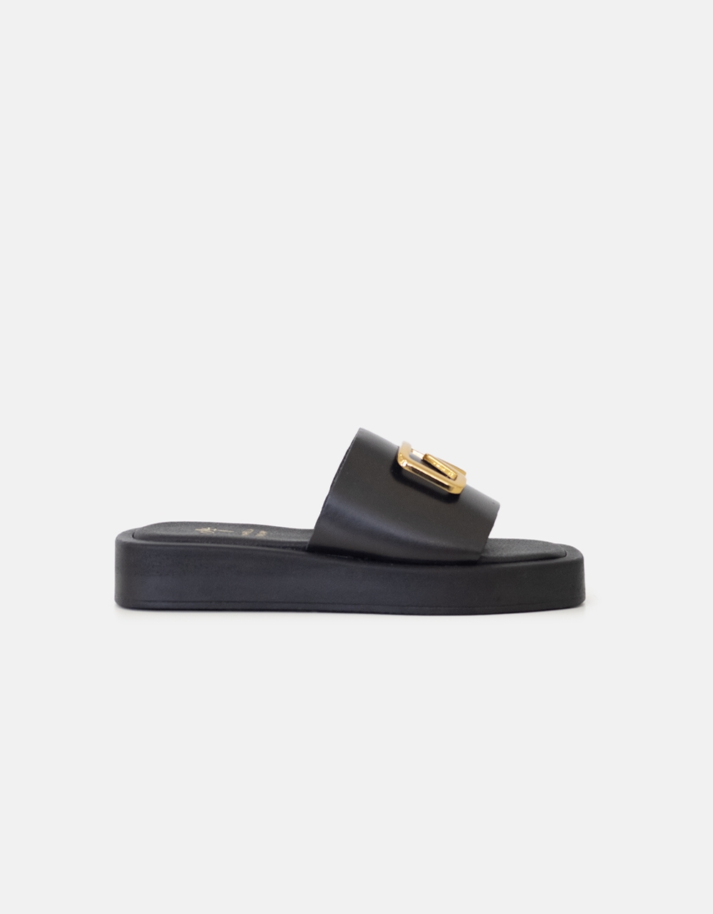 Δερμάτινα δίσολα σανδάλια Ελληνικής κατασκευής μονόχρωμα. Διαθέτουν φαρδιά φάσα με χρυσή διακοσμητική αγκράφα και ελαστική σόλα.