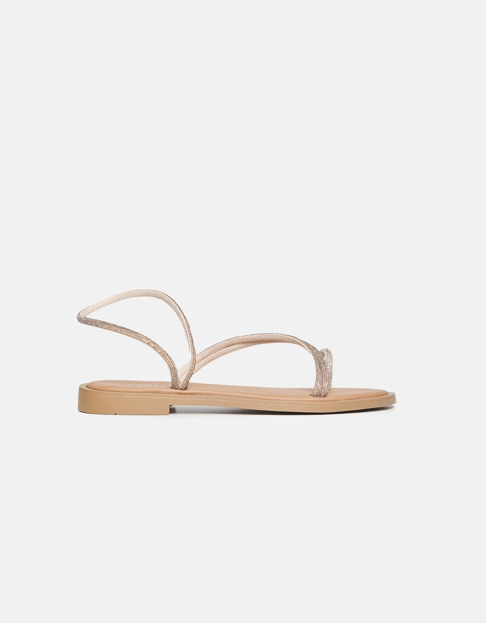 Δερμάτινα flat σανδάλια Ελληνικής κατασκευής με strass Χαλκός