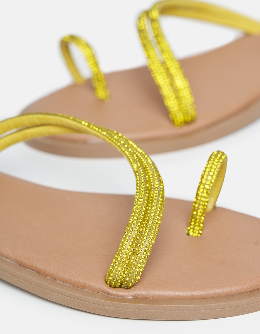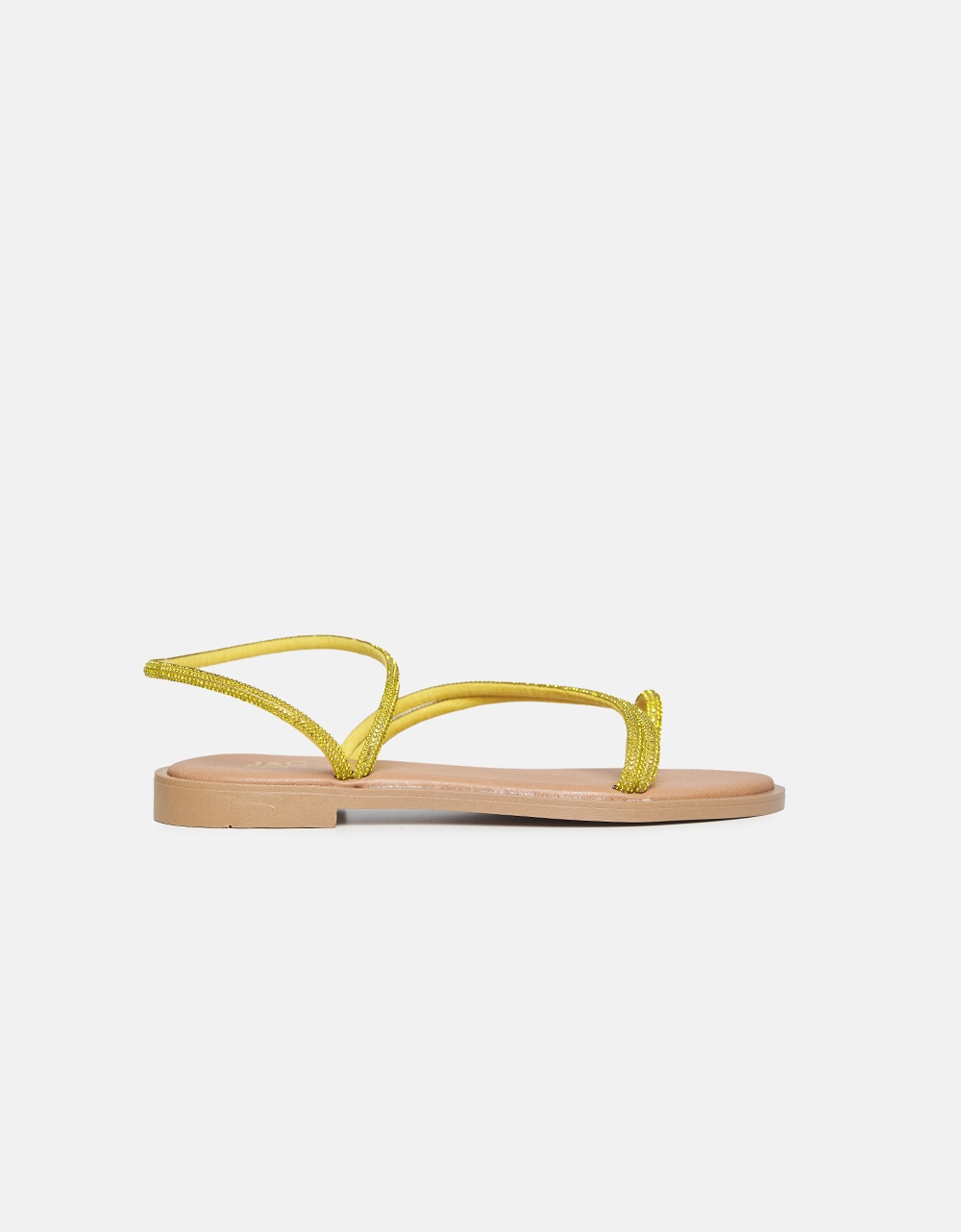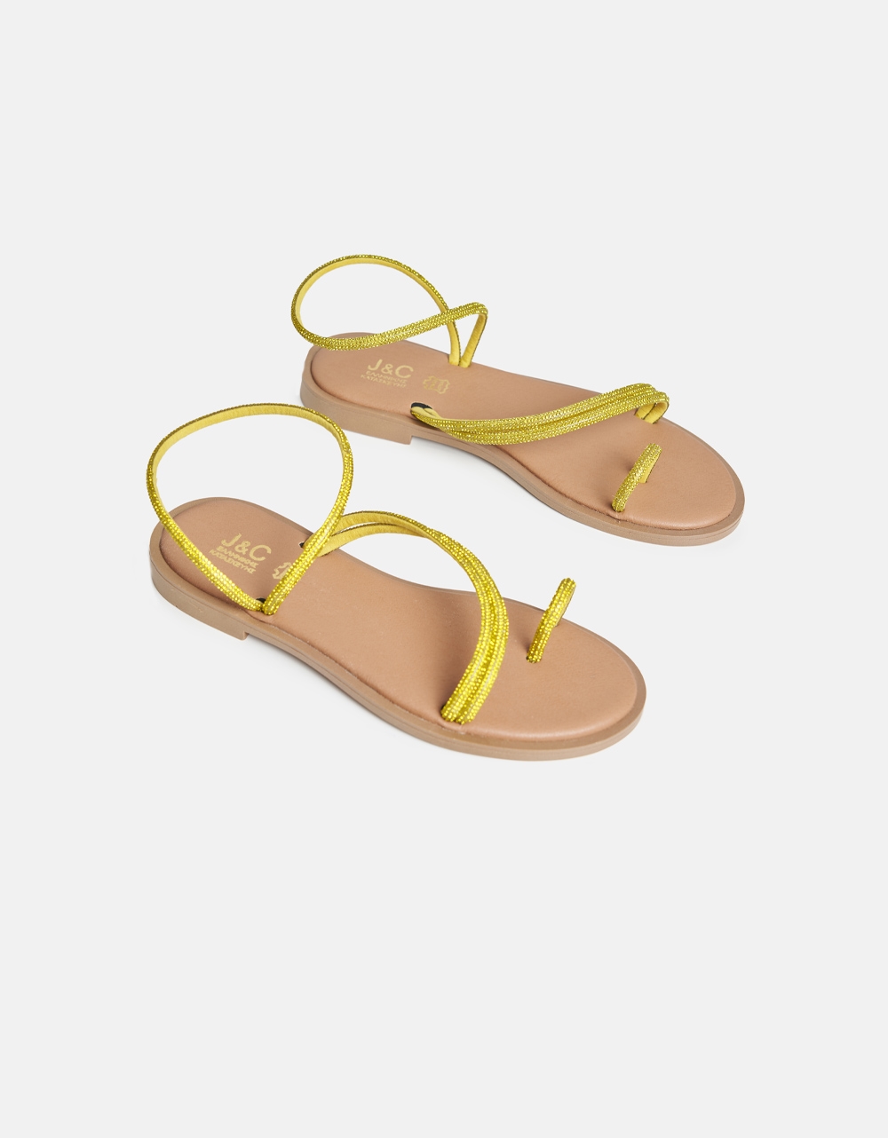 Δερμάτινα flat σανδάλια Ελληνικής κατασκευής με strass Κίτρινο