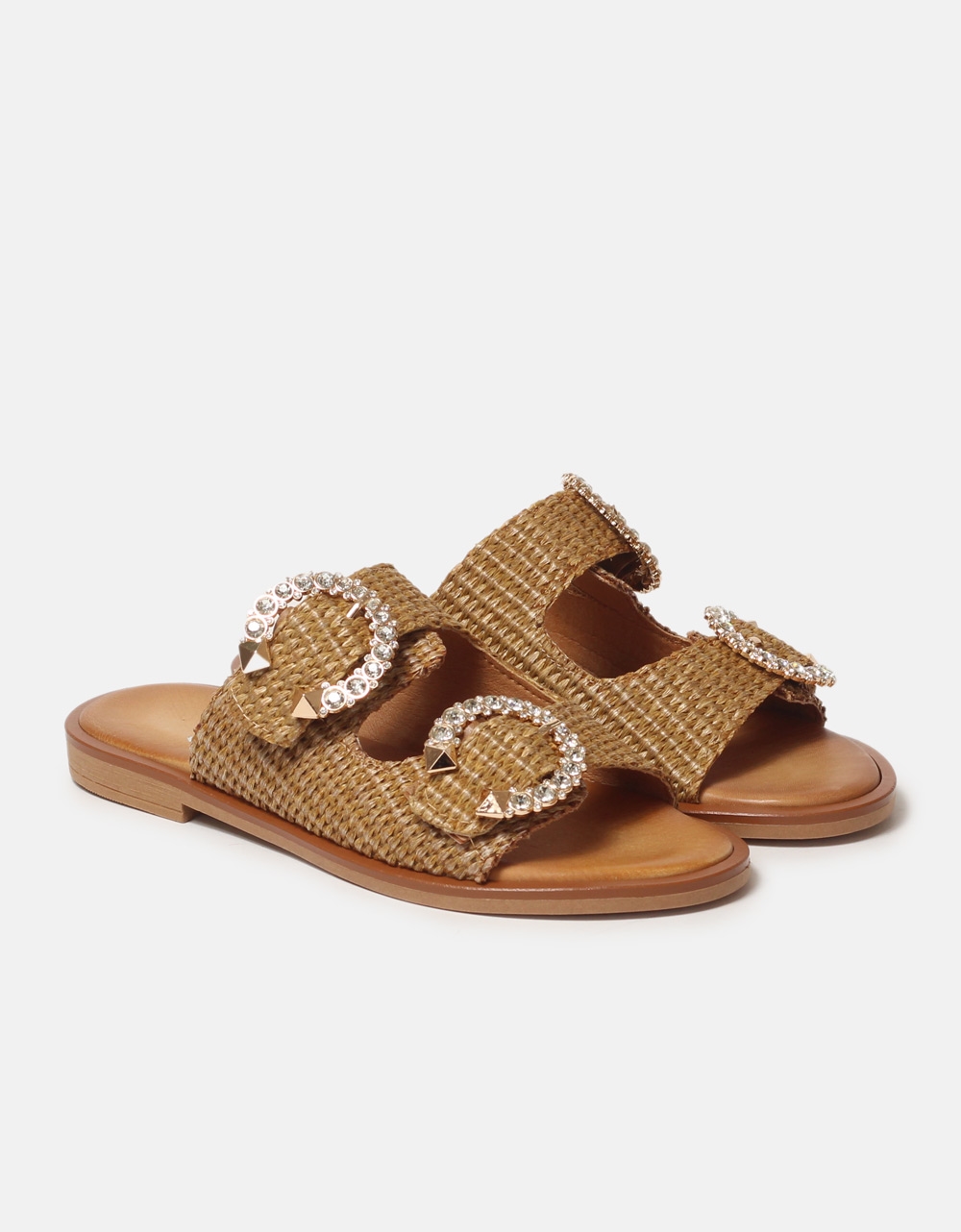 Flat σανδάλια Ελληνικής κατασκευής με διακοσμητικά πετράδια Ταμπά