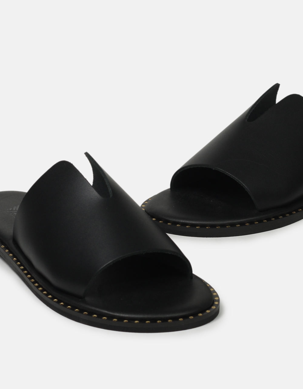 Δερμάτινα flat σανδάλια Ελληνικής Κατασκευής με κόψιμο στη φάσα Μαύρο