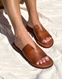 Δερμάτινα flat σανδάλια Ελληνικής κατασκευής της εταιρείας IRIS. Διαθέτουν φαρδιά φάσα με κόψιμο και ελαστική αντιολισθητική σόλα.