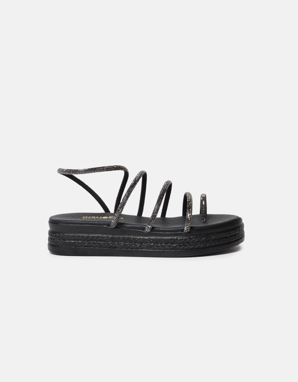 Δερμάτινα σανδάλια flatforms Eλληνικής κατασκευής, με λουράκια από strass. Διαθέτουν αφρώδη πάτο από γνήσιο δέρμα για άνετο πάτημα.