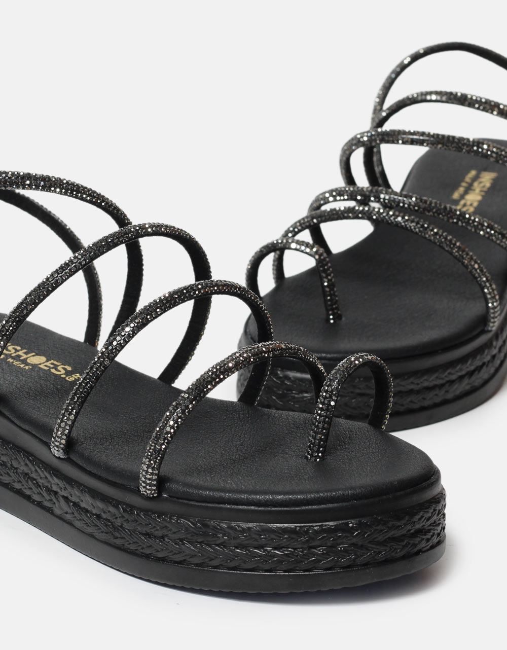 Δερμάτινα flatforms Eλληνικής κατασκευής με strass Μαύρο