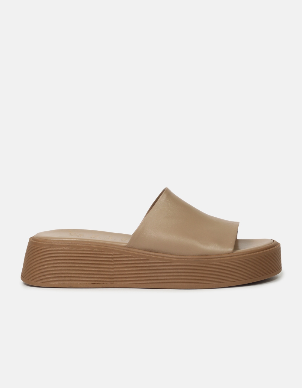 Δερμάτινα flatforms Ελληνικής Κατασκευής με φαρδιά φάσα Μπεζ