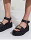 Δερμάτινα flatforms ψάθινα Ελληνικής κατασκευής με λουράκι Μαύρο