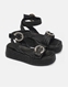 Δερμάτινα flatforms ψάθινα Ελληνικής κατασκευής με τοκά strass Μαύρο