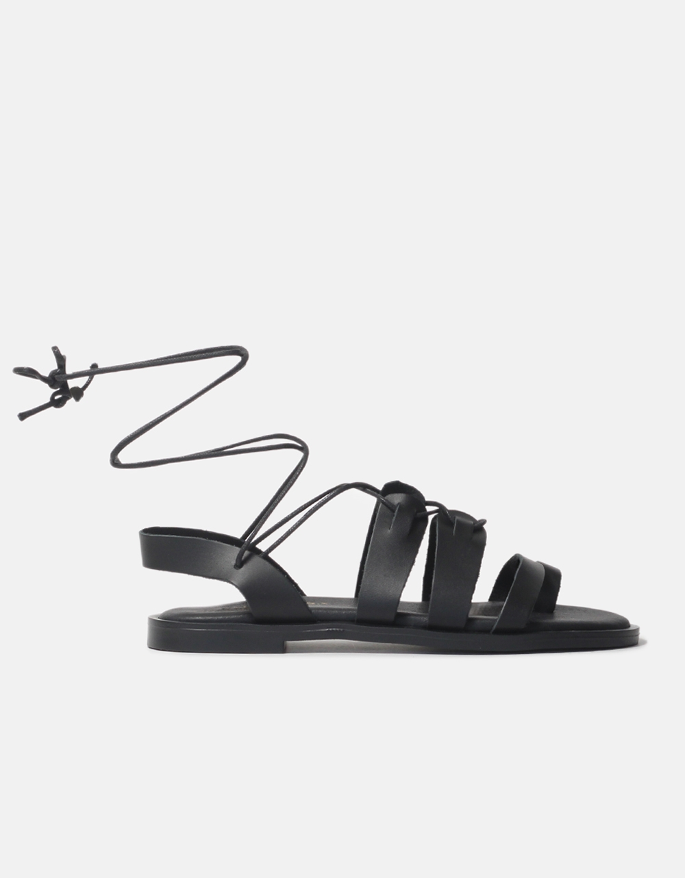 Δερμάτινα lace up σανδάλια Ελληνικής κατασκευής Μαύρο