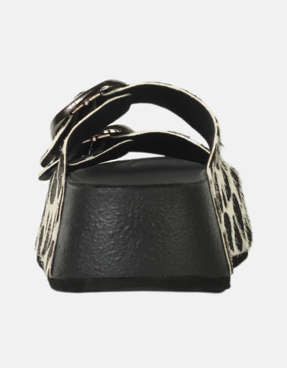 Δερμάτινα Σανδάλια Animal print Ελληνικής κατασκευής Λευκό/Μαύρο