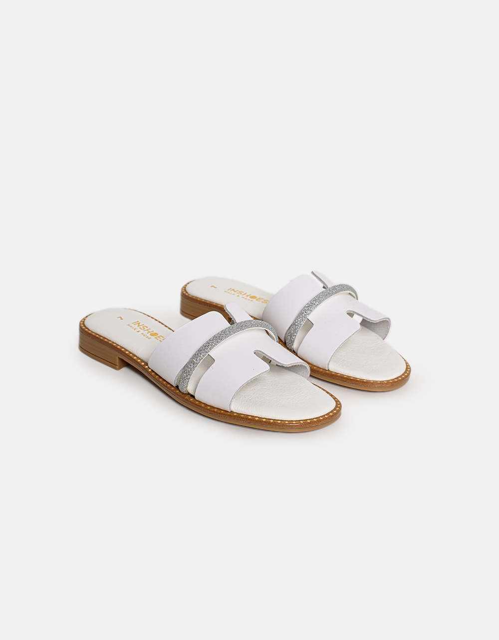 Δερμάτινα flat σανδάλια Ελληνικής κατασκευής, διακοσμημένα με strass. Διαθέτουν αφρώδη πάτο από γνήσιο δέρμα και ελαστική σόλα.
