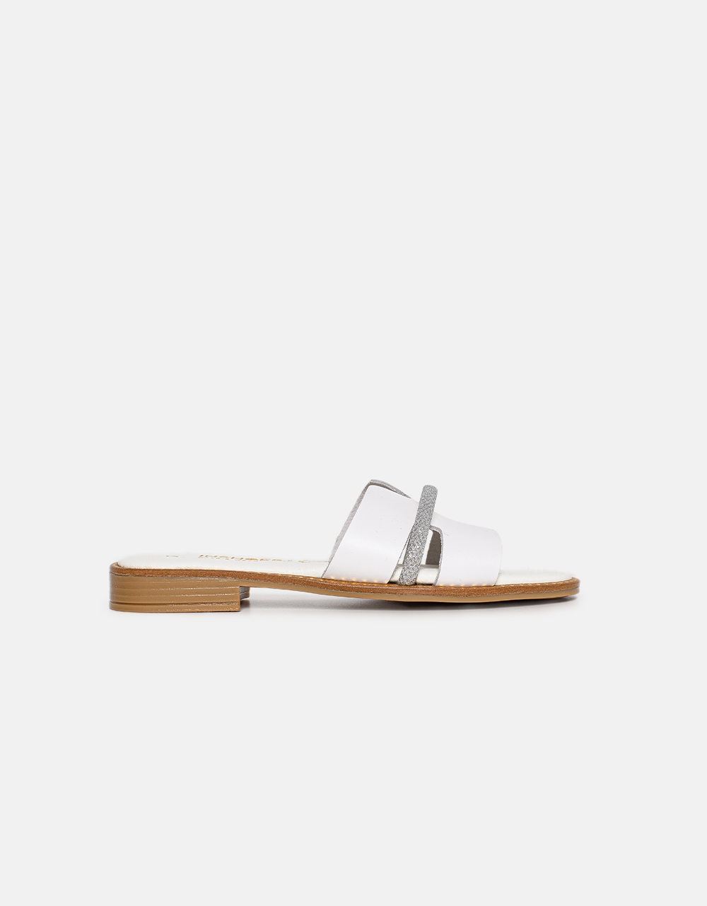 Δερμάτινα σανδάλια Ελληνικής κατασκευής διακοσμημένα με strass Λευκό