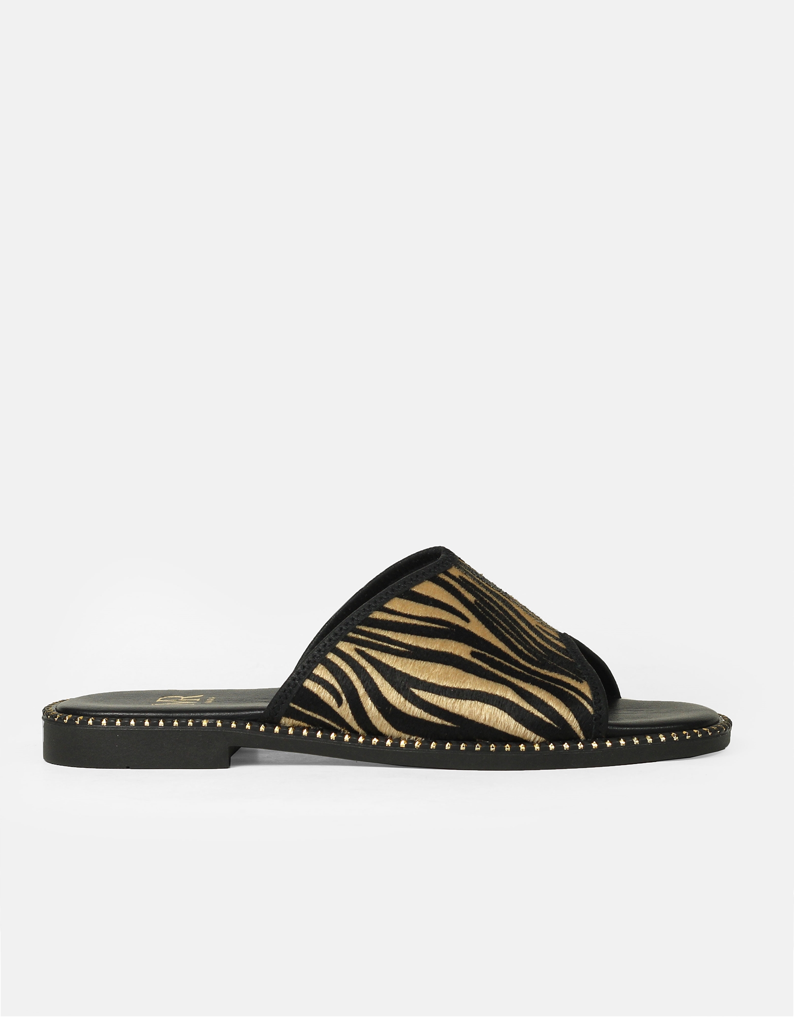 Δερμάτινα σανδάλια Ελληνικής κατασκευής με φάσα animal print Μαύρο