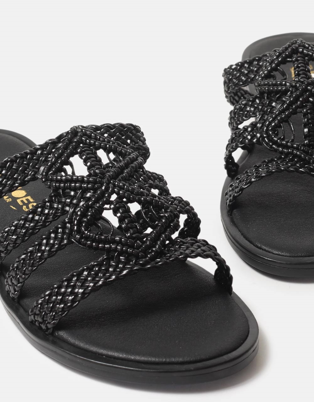 Δερμάτινα σανδάλια Ελληνικής κατασκευής με ιδιαίτερο σχέδιο πλέξης Μαύρο