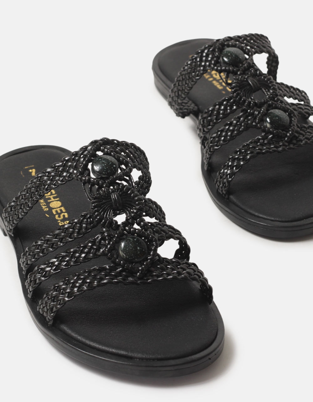Δερμάτινα σανδάλια Ελληνικής κατασκευής με σχέδιο πλέξης Μαύρο