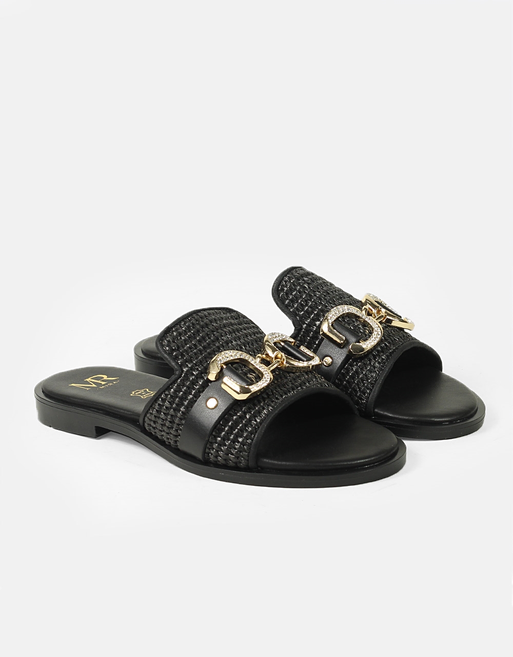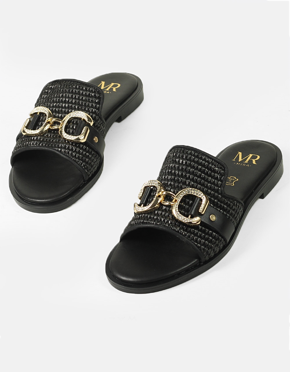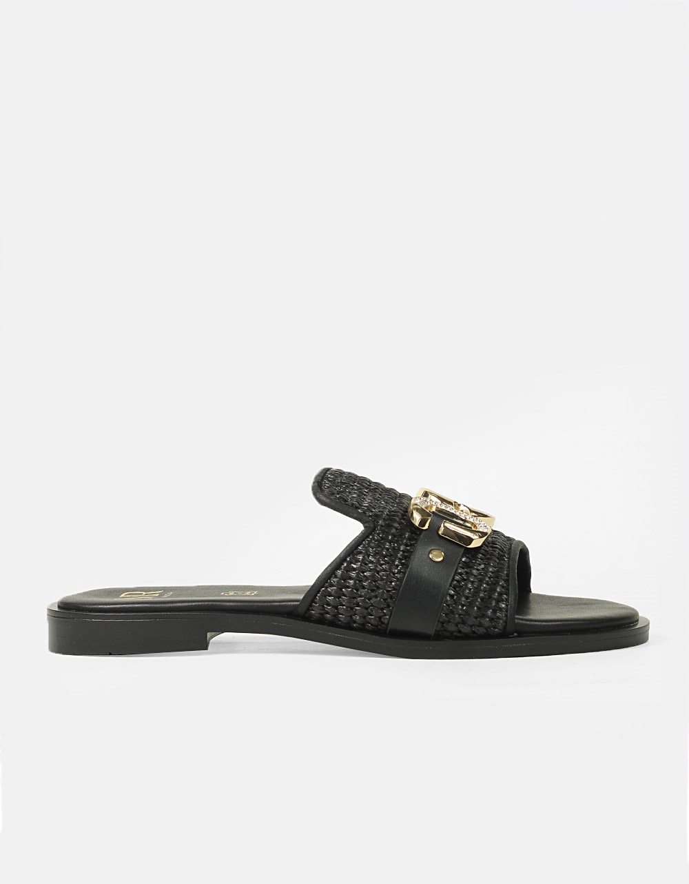 Δερμάτινα σανδάλια Ελληνικής Κατασκευής με ψάθινη φάσα Μαύρο