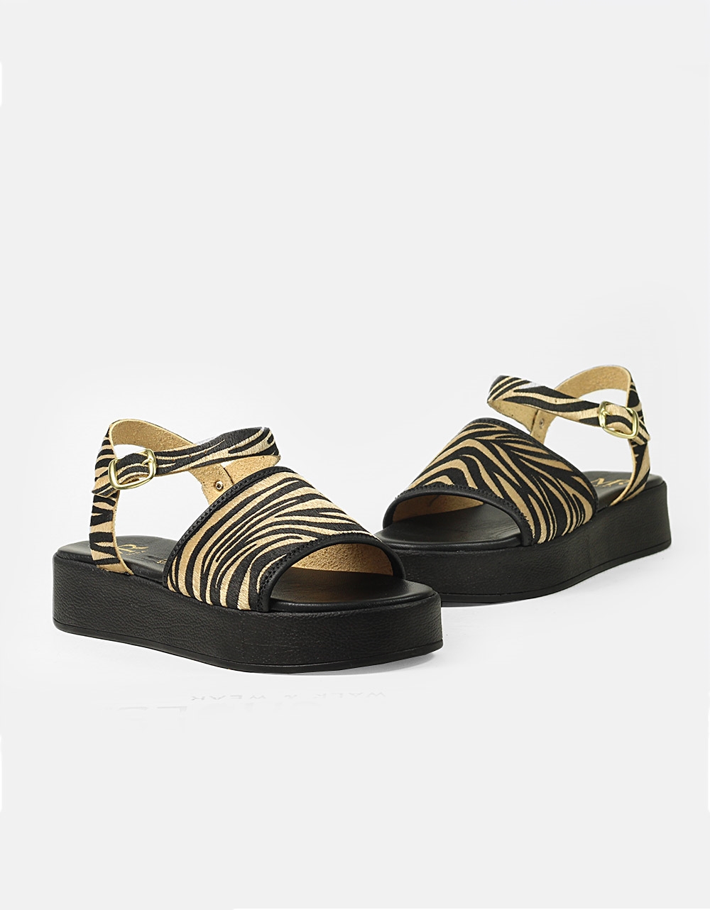 Δερμάτινα flatforms Ελληνικής κατασκευής με σχέδιο print Ζέμπρα