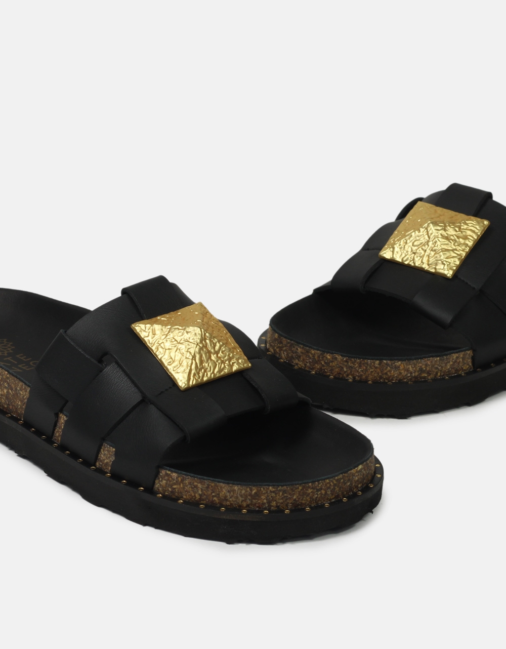 Δερμάτινα σανδάλια Ελληνικής κατασκευής με σχέδιο πλέξης και αγκράφα Μαύρο