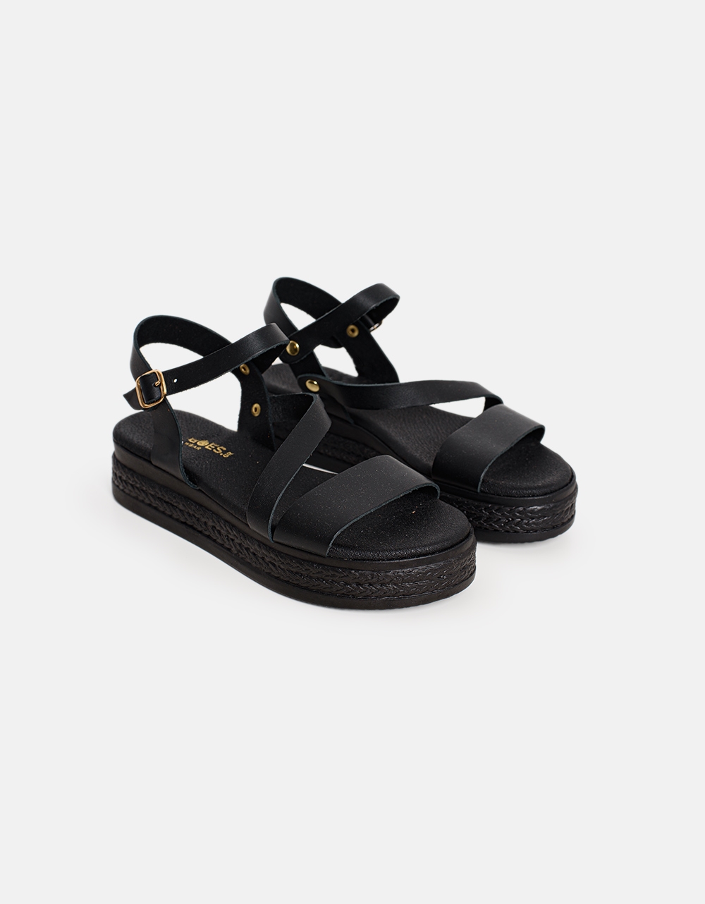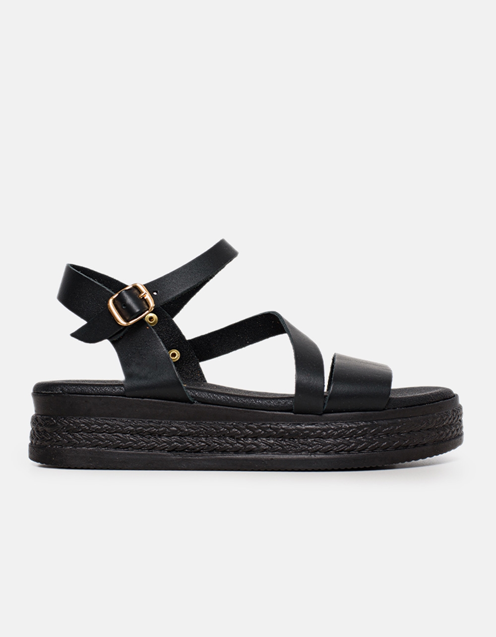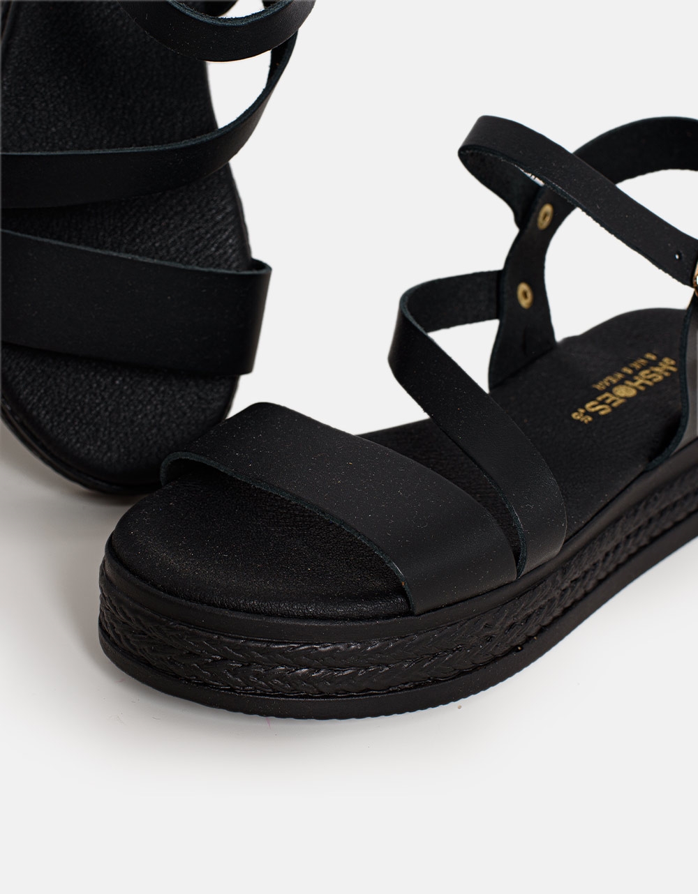 Δερμάτινα σανδάλια flatforms Ελληνικής κατασκευής Μαύρο