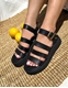 Δερμάτινα flatforms Ελληνικής κατασκευής με παράλληλα λουριά Μαύρο