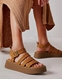 Δερμάτινα σανδάλια flatforms Ελληνικής κατασκευής, με παράλληλα λουριά. Διαθέτουν αφρώδη πάτο και ελαστική αντιολισθητική σόλα για άνετο βάδισμα. Είναι κατασκευασμένα εσωτερικά και εξωτερικά από γνήσιο δέρμα.