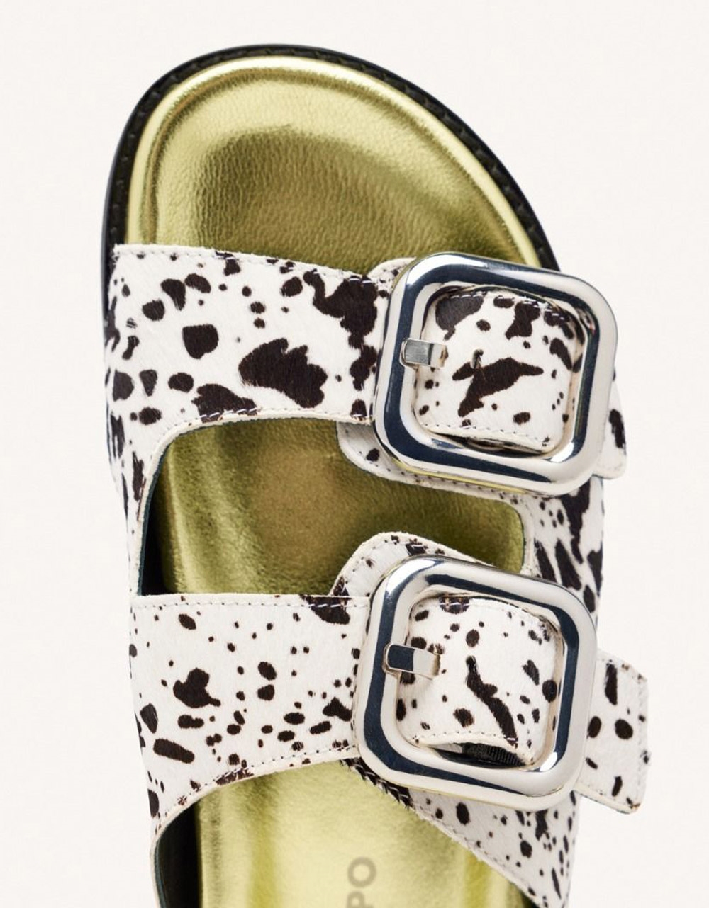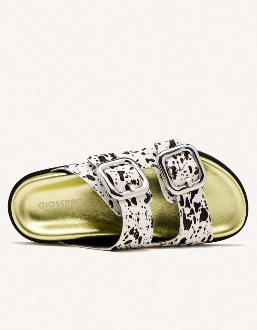 Δερμάτινα σανδάλια με διχρωμία και σχέδιο print Λευκό/Μαύρο