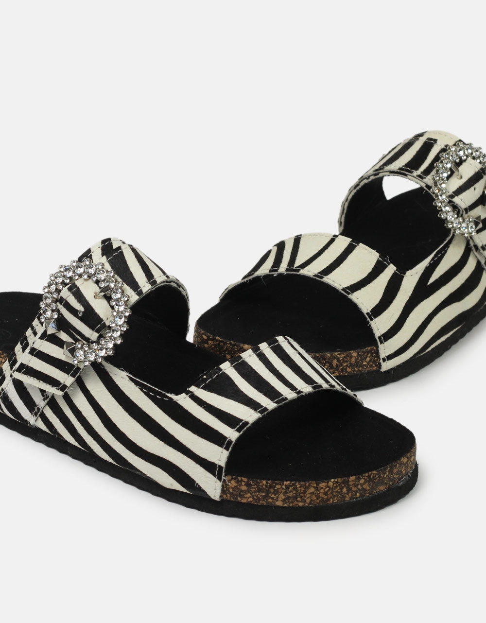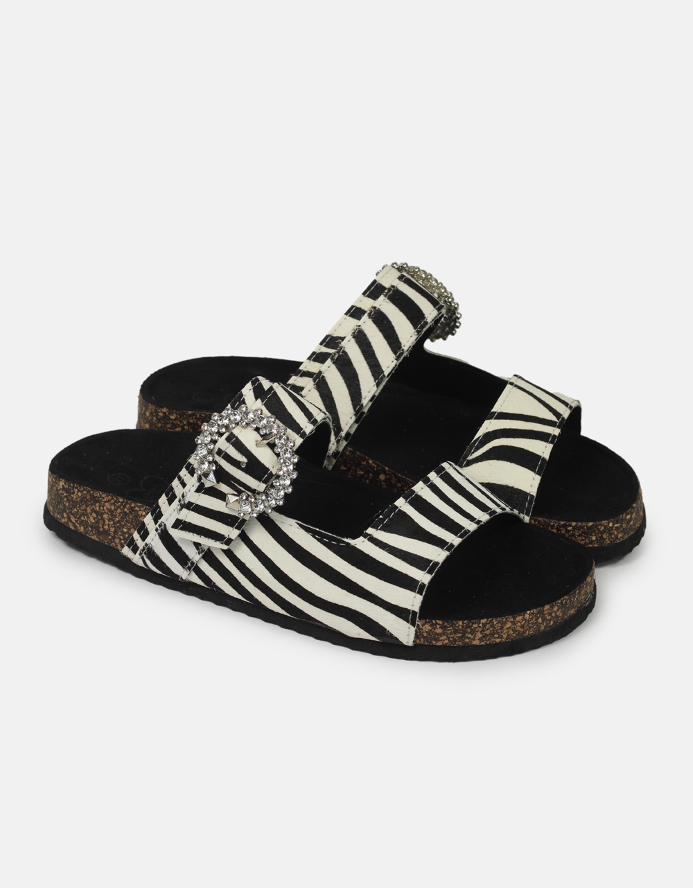 Δερμάτινα flat σανδάλια. Διαθέτουν διπλή φάσα με ιδιαίτερο μοτίβο και τοκά διακοσμημένο με strass, ενώ είναι κατασκευασμένα από γνήσιο δέρμα.