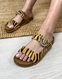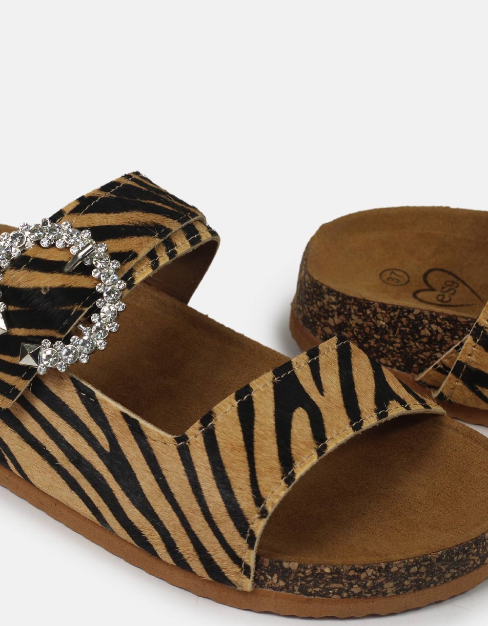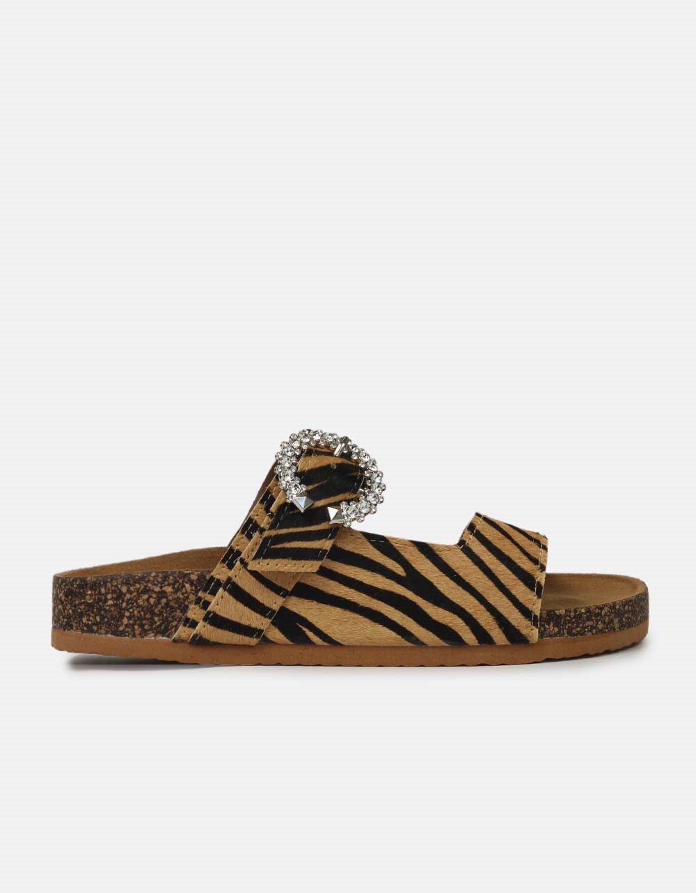 Δερμάτινα flat σανδάλια. Διαθέτουν διπλή φάσα με ιδιαίτερο μοτίβο και τοκά διακοσμημένο με strass, ενώ είναι κατασκευασμένα από γνήσιο δέρμα.